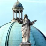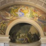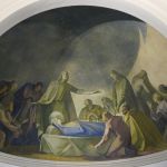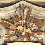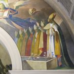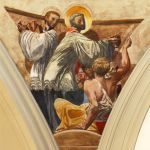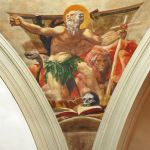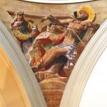 Il secondo conflitto mondiale interrompe i lavori che vengono ripresi dall’Arciprete Lino Pertile (1947-1964) che riesce a portarli a termine e a dare “unità, respiro, luce al tempio” ; tra il 1949 e il 1954 si porta a termine la facciata, si alza la navata mediana di oltre 4 metri, si ampliano le arcate di ingresso alla cupola e al presbiterio e l’interno viene inondato di luce ed il soffitto prezioso restaurato riappare nel suo splendore. Nel 1952 e nel 1963 vengono eseguiti degli affreschi sui pennacchi della cupola, sull’arco trionfale della navata mediana e sulla parete di fondo del presbiterio.