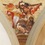 Tra il il 1792 e il 1796 l’architetto vicentino Ottone Calderari (1730-1803) procede al restauro della chiesa; si ingrandisce il presbiterio, si erigono sei altari e si arricchisce la navata unica con un “soffitto alla ducale” vero gioiello per la struttura lignea e le decorazioni dorate dei lacunari e per le tele di scuola veneta incastonate con pregevoli dipinti; il soffitto incastona 15 preziose tele, opere di artisti Veneti, che operarono tra il 1600 ed il 1700 (Carpioni, Ballante, Pittoni ed altri): l’Assunta di G.B. Pittoni, un’Ascensione attribuita a Giulio Carpioni e una Presentazione al Tempio di Antonio Zanchi.
