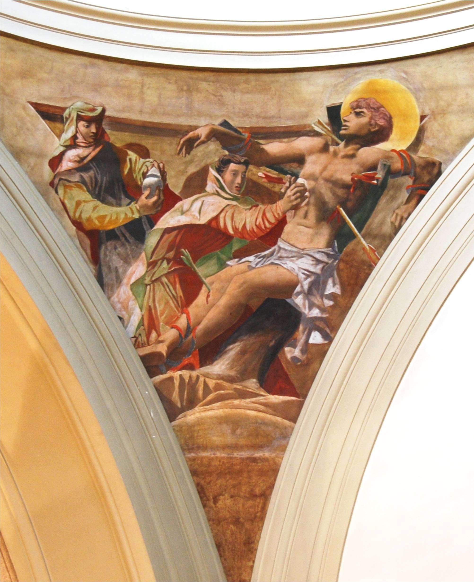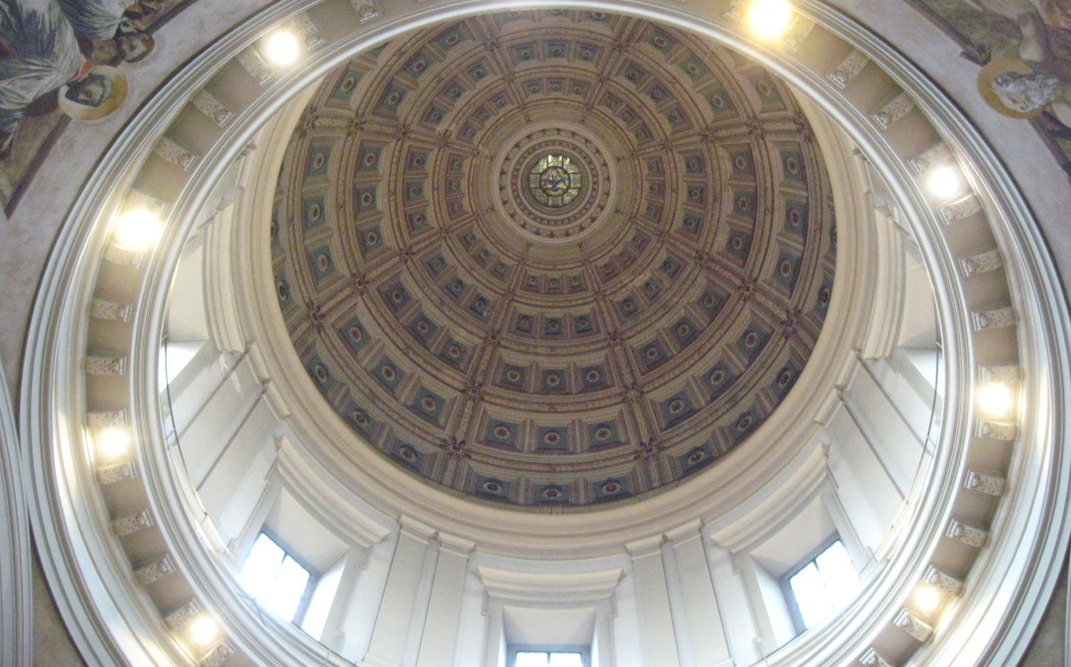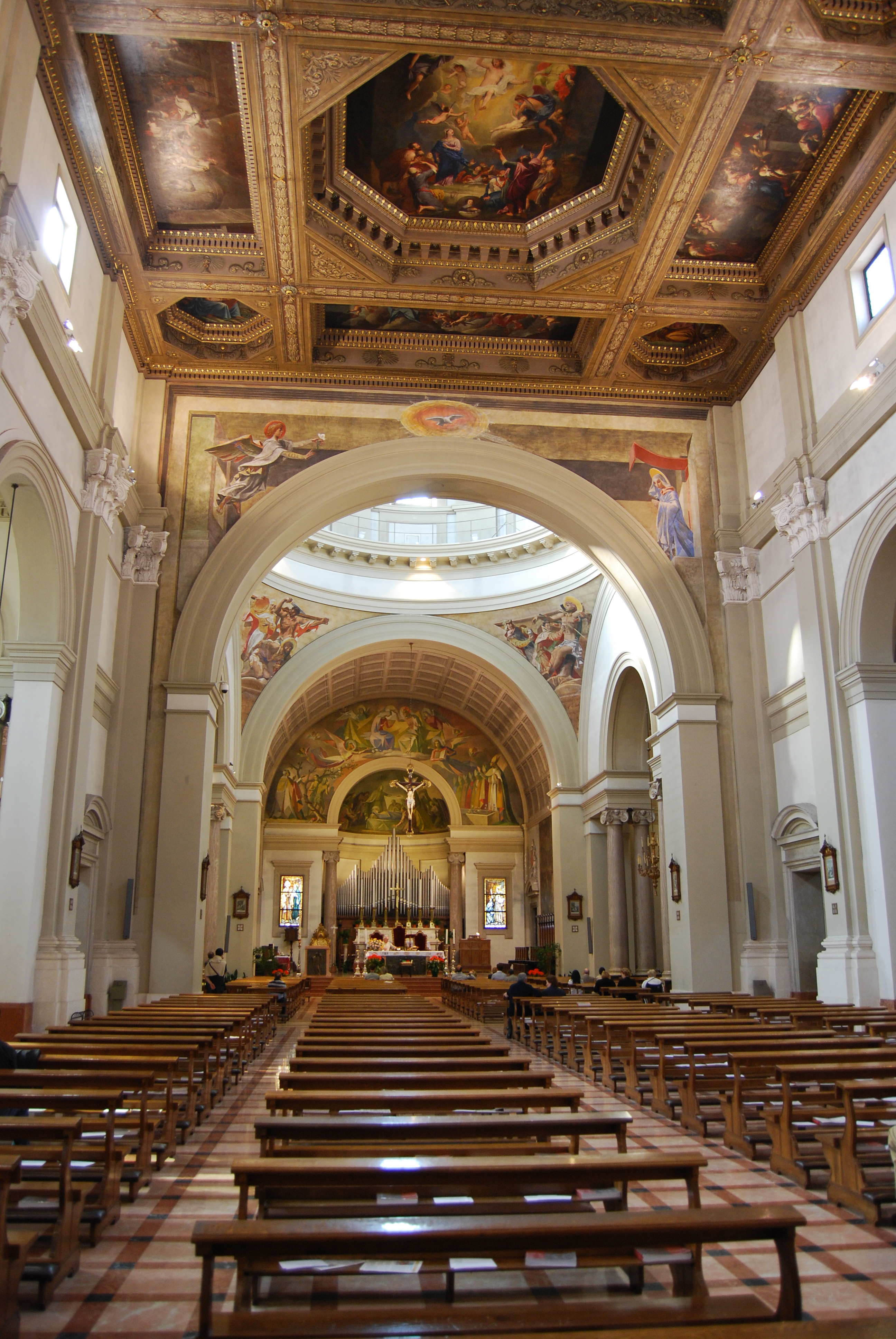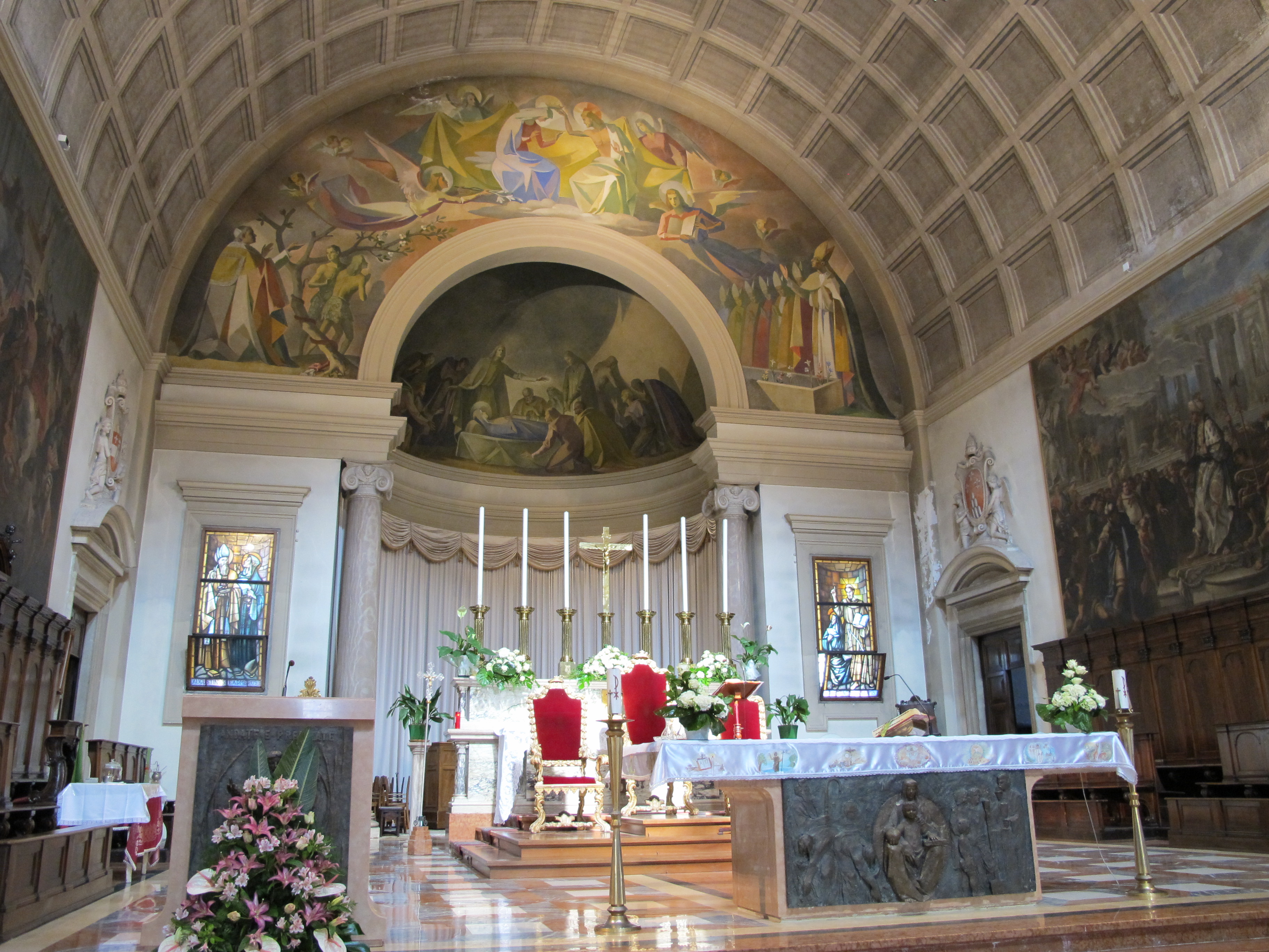 Il secondo conflitto mondiale interrompe i lavori che vengono ripresi dall’Arciprete Lino Pertile (1947-1964) che riesce a portarli a termine e a dare “unità, respiro, luce al tempio” ; tra il 1949 e il 1954 si porta a termine la facciata, si alza la navata mediana di oltre 4 metri, si ampliano le arcate di ingresso alla cupola e al presbiterio e l’interno viene inondato di luce ed il soffitto prezioso restaurato riappare nel suo splendore. Nel 1952 e nel 1963 vengono eseguiti degli affreschi sui pennacchi della cupola, sull’arco trionfale della navata mediana e sulla parete di fondo del presbiterio.