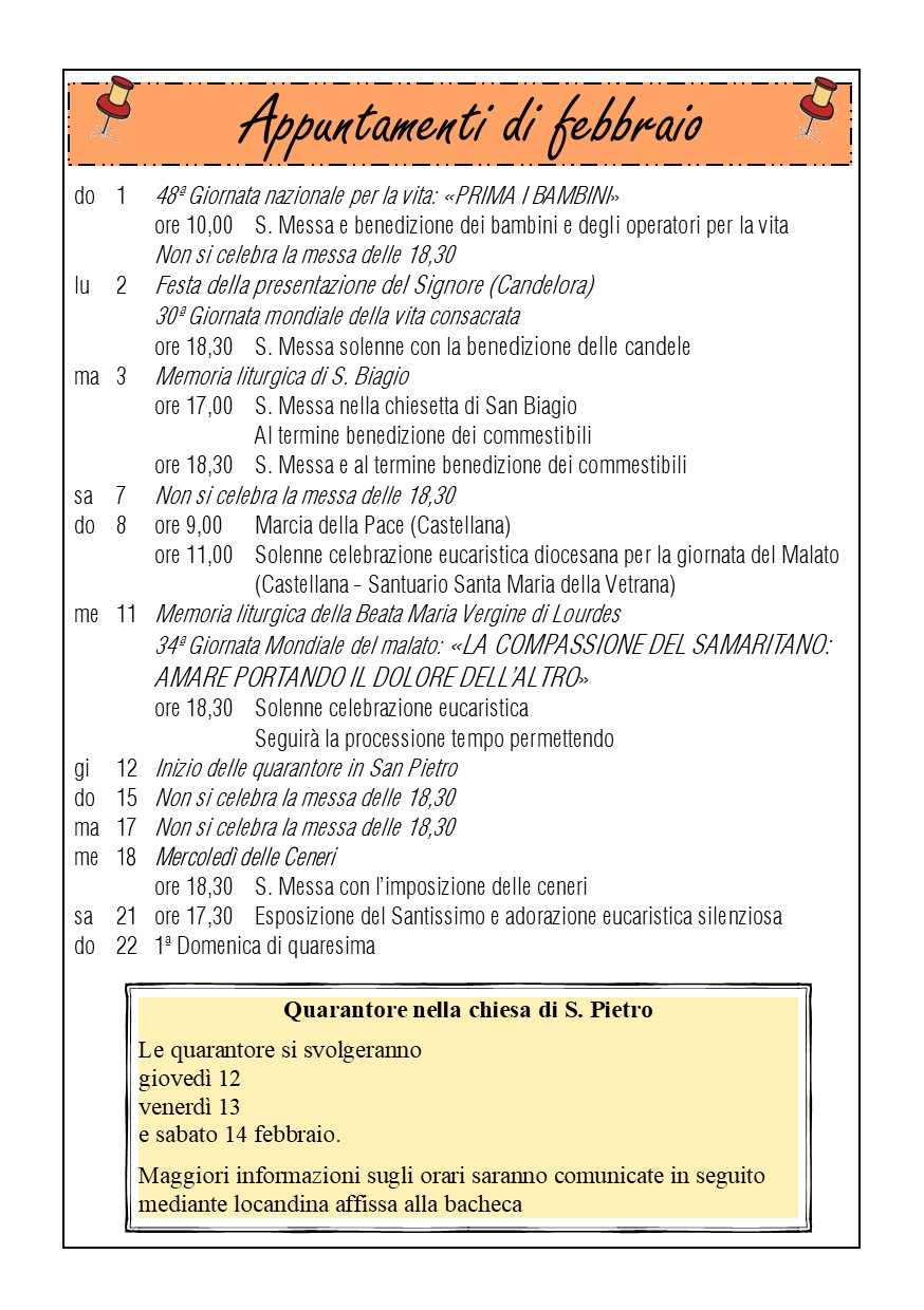 Appuntamenti di Febbraio Febbraio Memorandum Appuntamenti del mese 3 maggio 2022, Comunità San Pietro